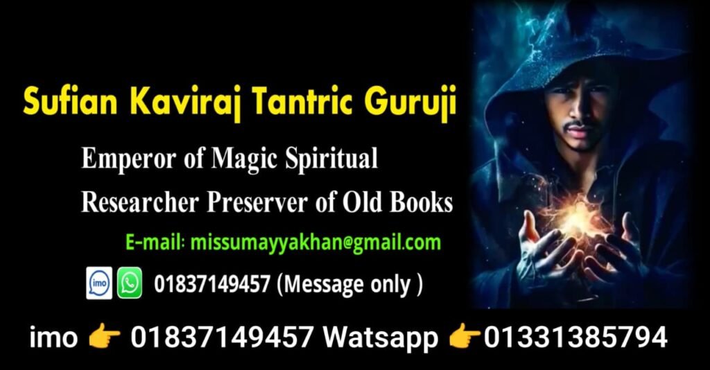 আমি মোঃ সুফিয়ান কবিরাজ তান্ত্রিক ( ডাক নাম মোঃ আবু সুফিয়ান ) আমার বয়স যখন ৯ বছর ছিলো তখন থেকেই আমার তান্ত্রিক কবিরাজি কাজের প্রতি খুবই আগ্রহ ছিলো সেখান থেকেই আমি বিভিন্ন জায়গায় ঘুরে ফিরে তান্ত্রিক কবিরাজি কাজ তন্ত্র মন্ত্র শিখেছি, আমার ১২, জন ওস্তাদ আছে, তিনজন মহিলা ৯ জন পুরুষ ছিলেন, আমি তাদের থেকে তন্ত্র মন্ত্র তান্ত্রিক সাধনা সমস্ত বিদ্যা শিখেছি,, তার পাশাপাশি বিভিন্ন কবিরাজ তান্ত্রিকের সাথে ঘুরেফিরে অনেক বই খাতা ডাইরি সংগ্রহ করেছি,, এই জগতে আমি অনেক টাকা নষ্ট করেছি এবং অনেক কষ্ট করেছি সেই কষ্টের ফলাফল আপনাদের সামনে আজকে দেখতেছেন,,